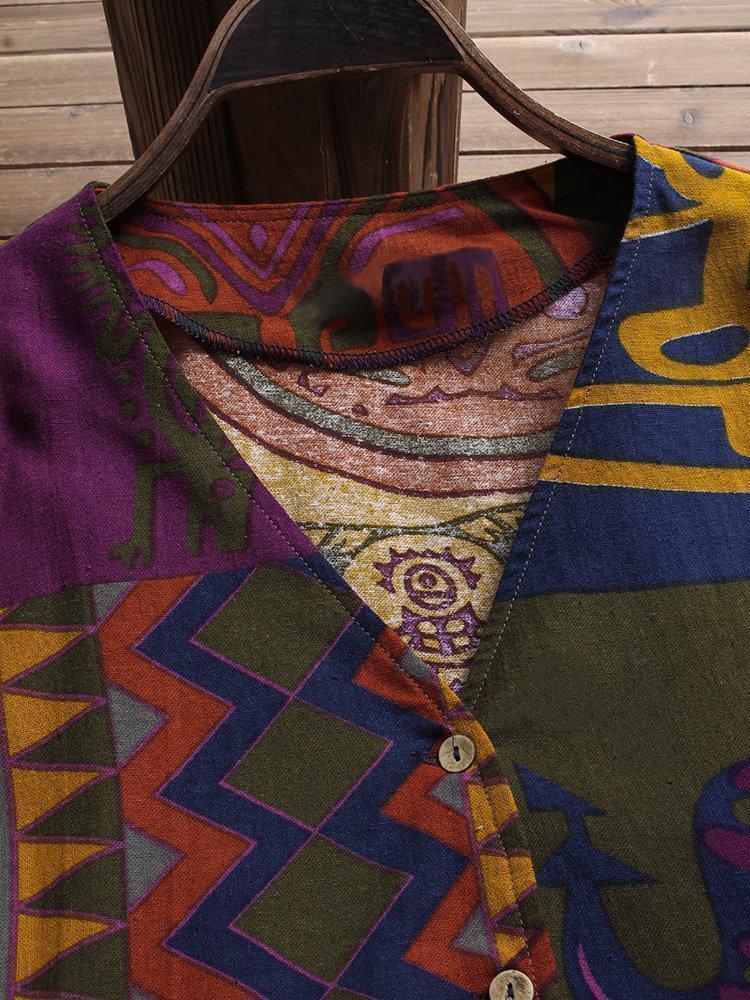 Specification :Color: Blue,OrangeSize: S,M,L,XL,2XL,3XL,4XL,5XLSleeve Length: Long SleeveNeckline: V-neckPattern: PatchworkMaterial: CottonSeason: Spring,SummerOccasion: Daily Casual,BohemianSilhouette: A-LineClosure Type: Button FlyPackage included:1*Shirt