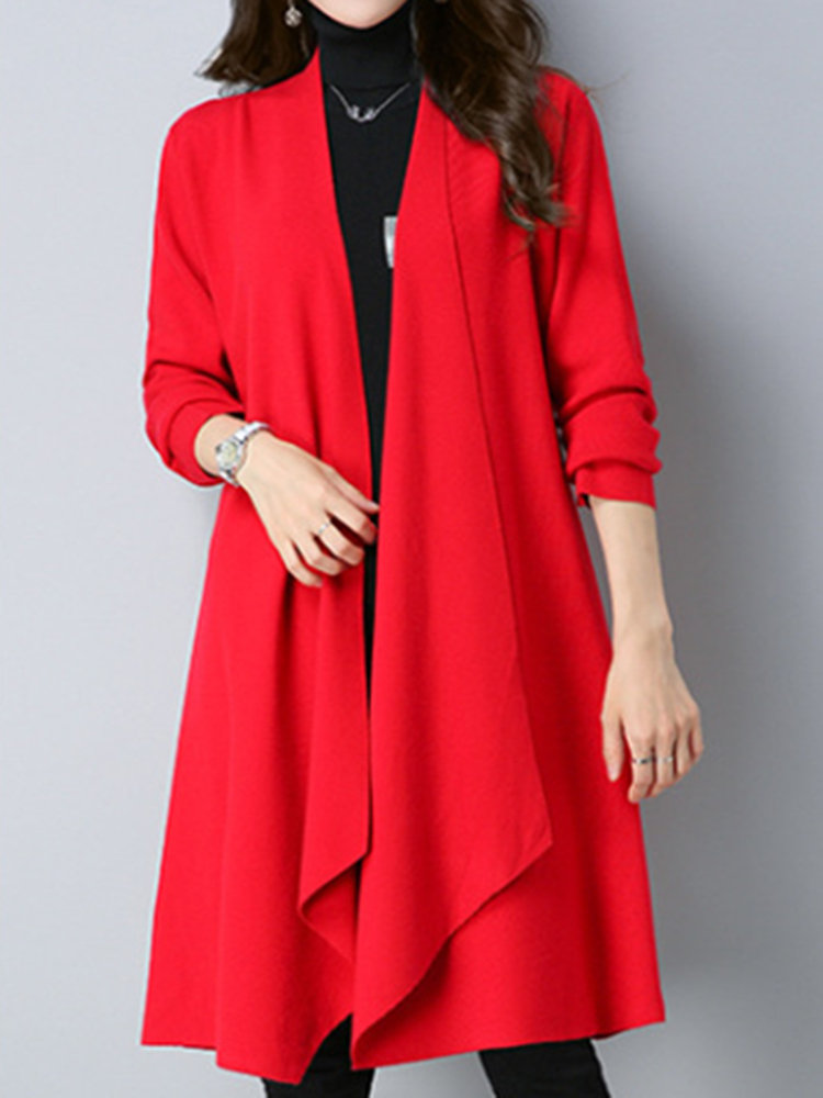 Elegant Women Knitted Long Sleeve Asymmetrical Hem Coats