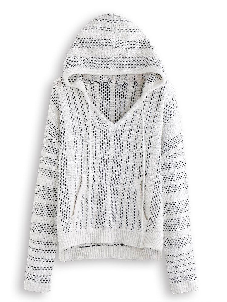 Specification :Color: WhiteSize: S,M,L,XLSleeve Length: Long SleeveNeckline: HoodedPattern: StripedMaterial: Acrylic Season: Spring,AutumnOccasion: Daily CasualPackage included:1*Sweatshirt