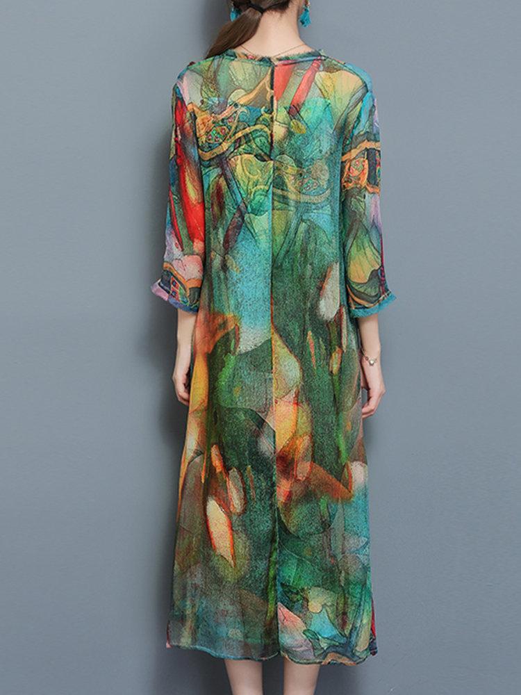 Butterfly Print Sleeveless O-neck Vintage Maxi Dresses
